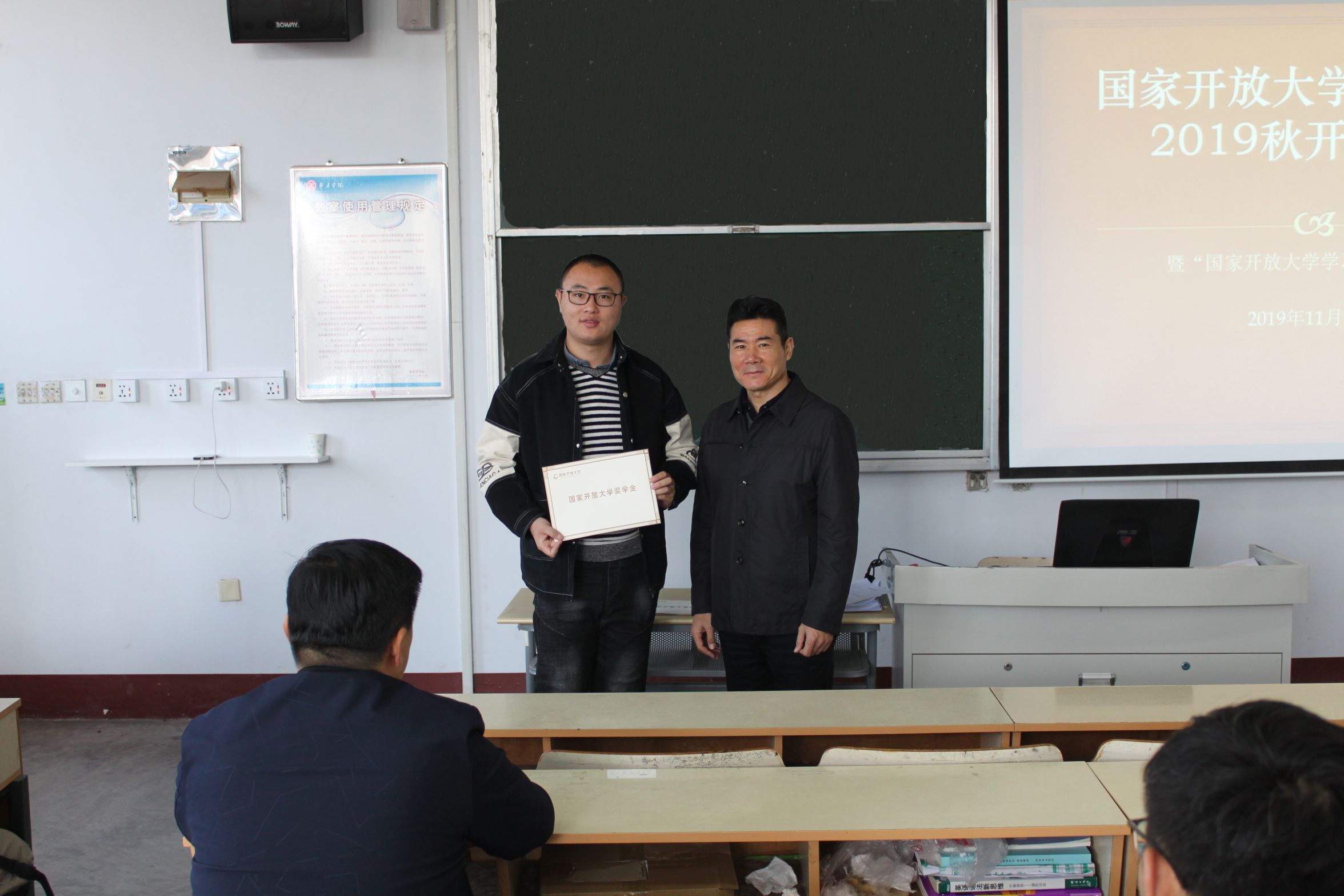 开学典礼上还为获得2018年度奖学金的同学门进行了颁奖。
