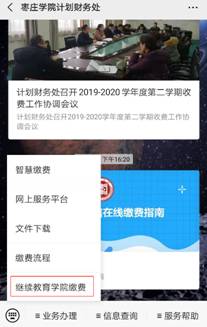 第二步:进入公众号后点击下面“业务办理”中“英国beat365官方网站缴费”选项进入缴费平台页面。