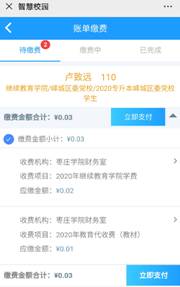 2、登陆后务必仔细核对姓名、专业、账单金额、账单说明等信息。