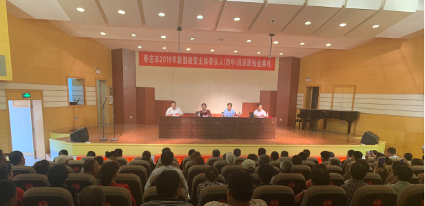 9月11日下午,枣庄市2019年新型经营主体带头人培训班结业典礼在音乐楼报告厅举行。枣庄市农业农村局贾鹏章局长、校党委委员、副校长、李丽清、英国beat365官方网站院长张宗海、食品与药品学院副院长张立华出席结业典礼并讲话。