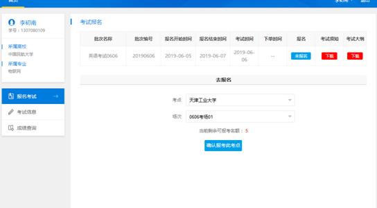 考生报名时,有当前考点、当前场次的可报考名额提示,此数量实时更新,以此便于考生合理安排报考时间,积极报考。