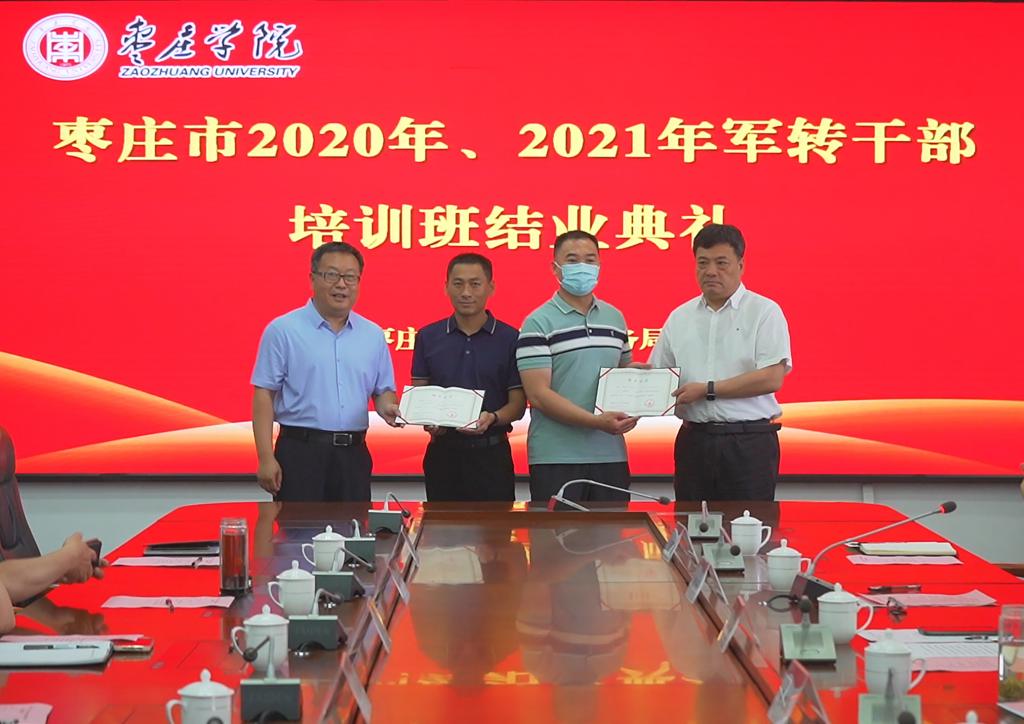 2022年5月27日上午,枣庄市2020年、2021年军转干部培训班结业典礼在beat365官网举行,校党委委员、副校长丰雷,枣庄市退役军人事务局党组成员、副局长张成磊,枣庄市退役军人事务局四级调研员王茂权,英国beat365官方网站创新学院学院院长王明高,部分优秀学员代表参加结业典礼,其他学员通过视频会议观看在线直播,典礼由英国beat365官方网站英国beat365官方网站院长张宗海主持。