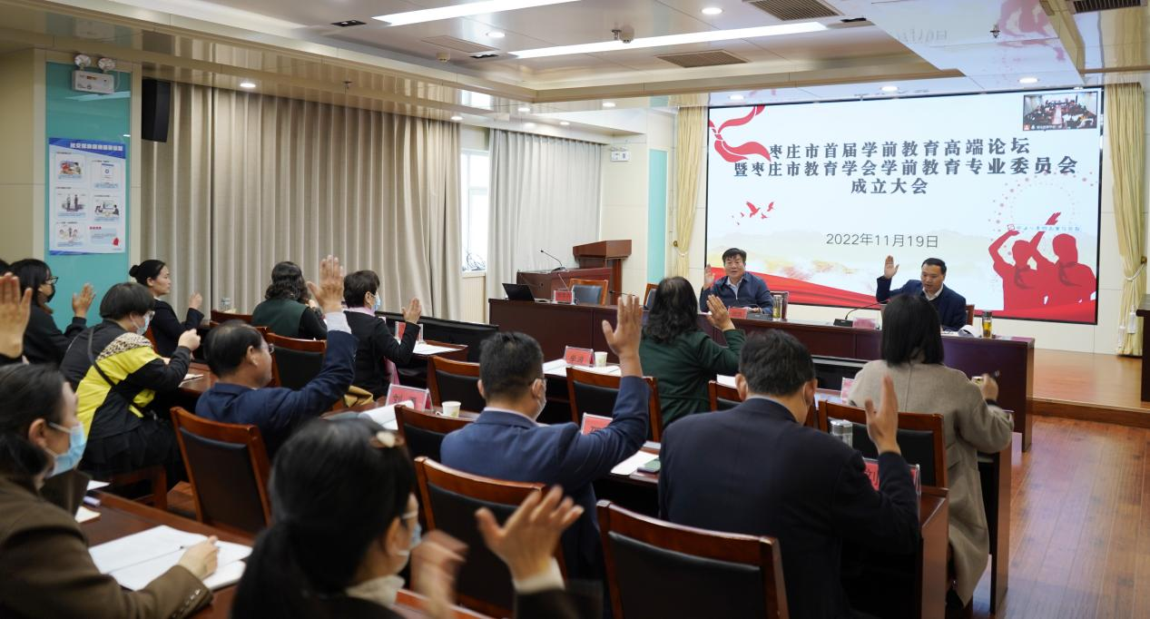 11月19日,由枣庄市教育学会和枣庄市教育科学研究院联合举办的“枣庄市首届学前教育高端论坛”暨枣庄市教育学会学前教育专业委员会成立大会在枣庄市教育局会议室举行。枣庄市教育学会会长胡小林,副会长、枣庄市教育局党组成员、副局长、市教育科学研究院院长邓淇,副会长兼秘书长、英国beat365官方网站英国beat365官方网站院长张宗海,全市教育系统具体主管学前教育工作的负责同志,以及全市优秀幼儿园园长和幼儿教育工作者400余人,参加了网络视频会议。